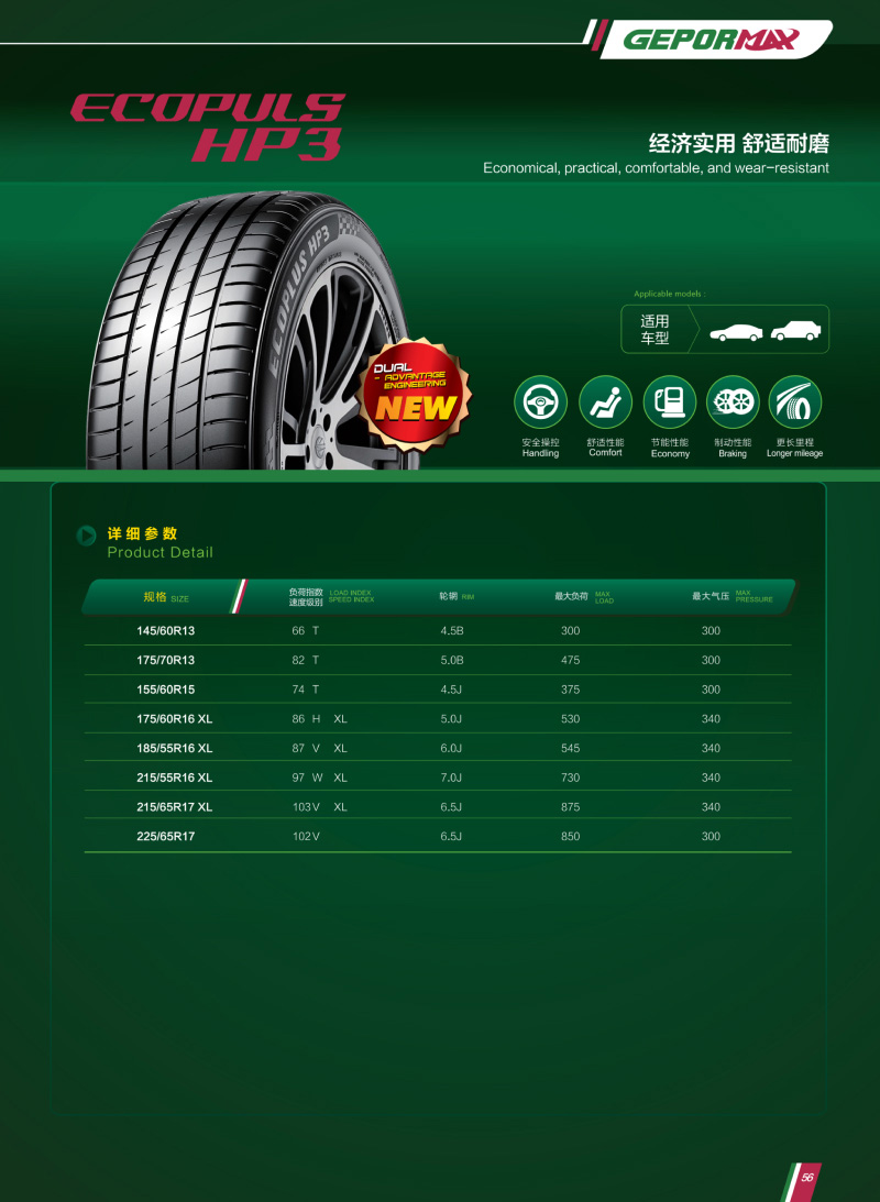 全新升級低滾阻花紋,靜音節油,經(jīng)濟實(shí)用,舒適耐磨。