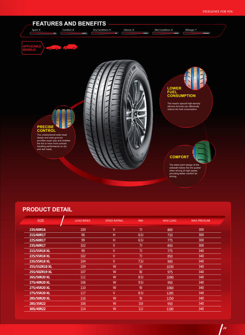 SUV專(zhuān)用輪胎,靜音胎面,超強抓地設計,精準操控。