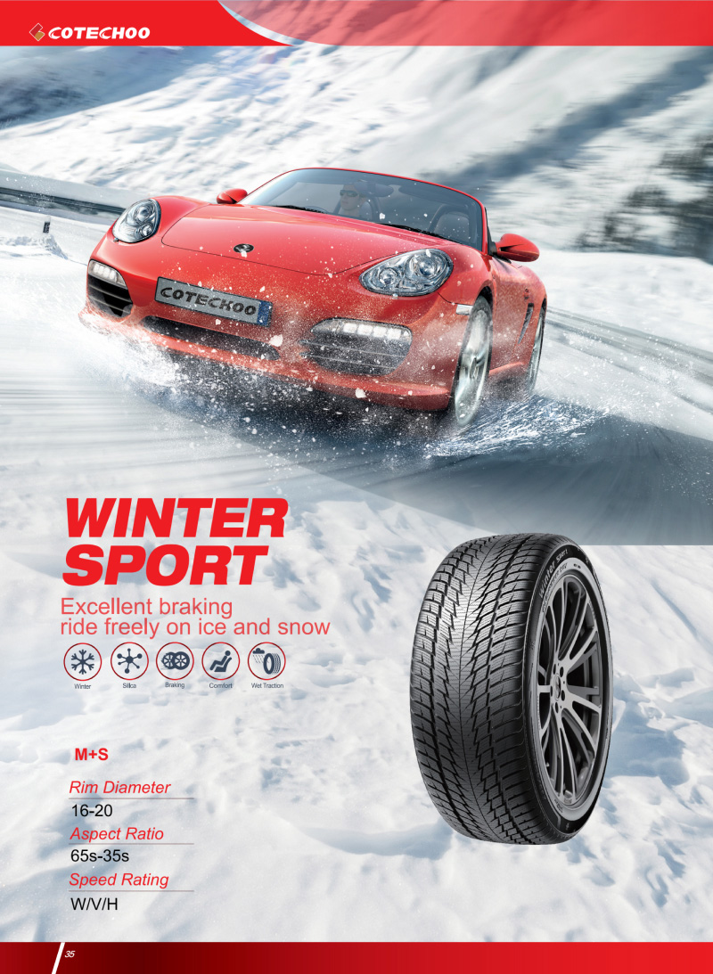 WINTER SPORT 獨特胎面膠料配方及花紋,為輪胎提供良好的牽引力和制動(dòng)性能,可保證在冬季氣候下的駕駛安全性能。